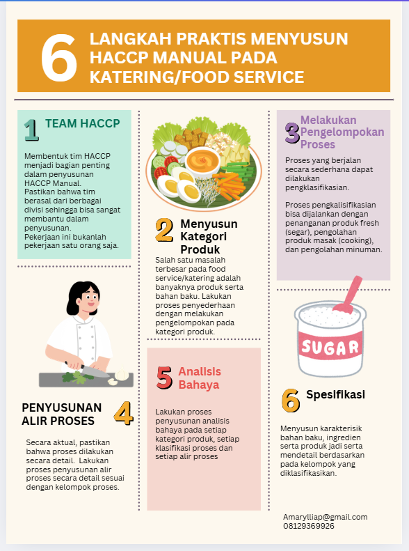 Bagi pelaku dunia food service/katering, penyusunan HACCP Manual menjadi hal yang terkadang rumit dan sulit untuk dijalankan. Hal ini tentu saja menjadi hambatan apabila akan melakukan peningkatan sistem dan mengimplementasikan manajemen keamanan pangan.