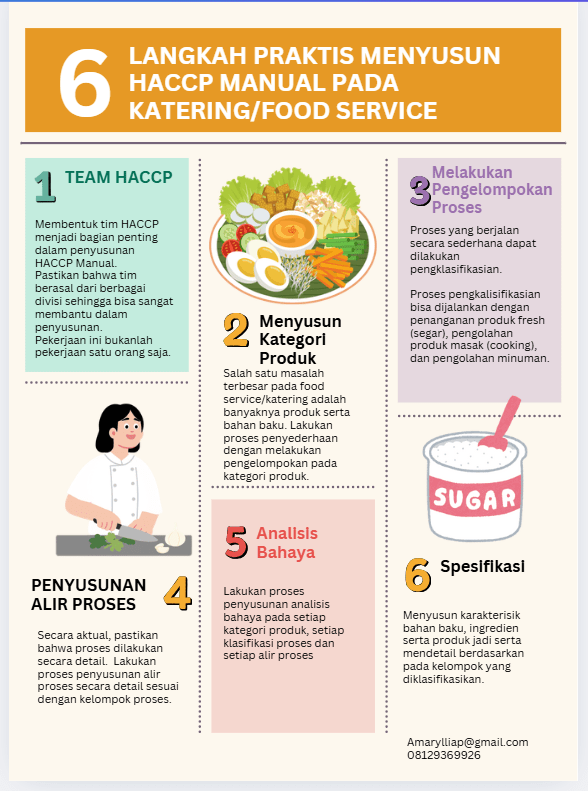 Berikut ini adalah 6 langkah praktis yang dapat dijalankan setiap pelaku sektor food service/katering dalam menyusun HACCP Manual.